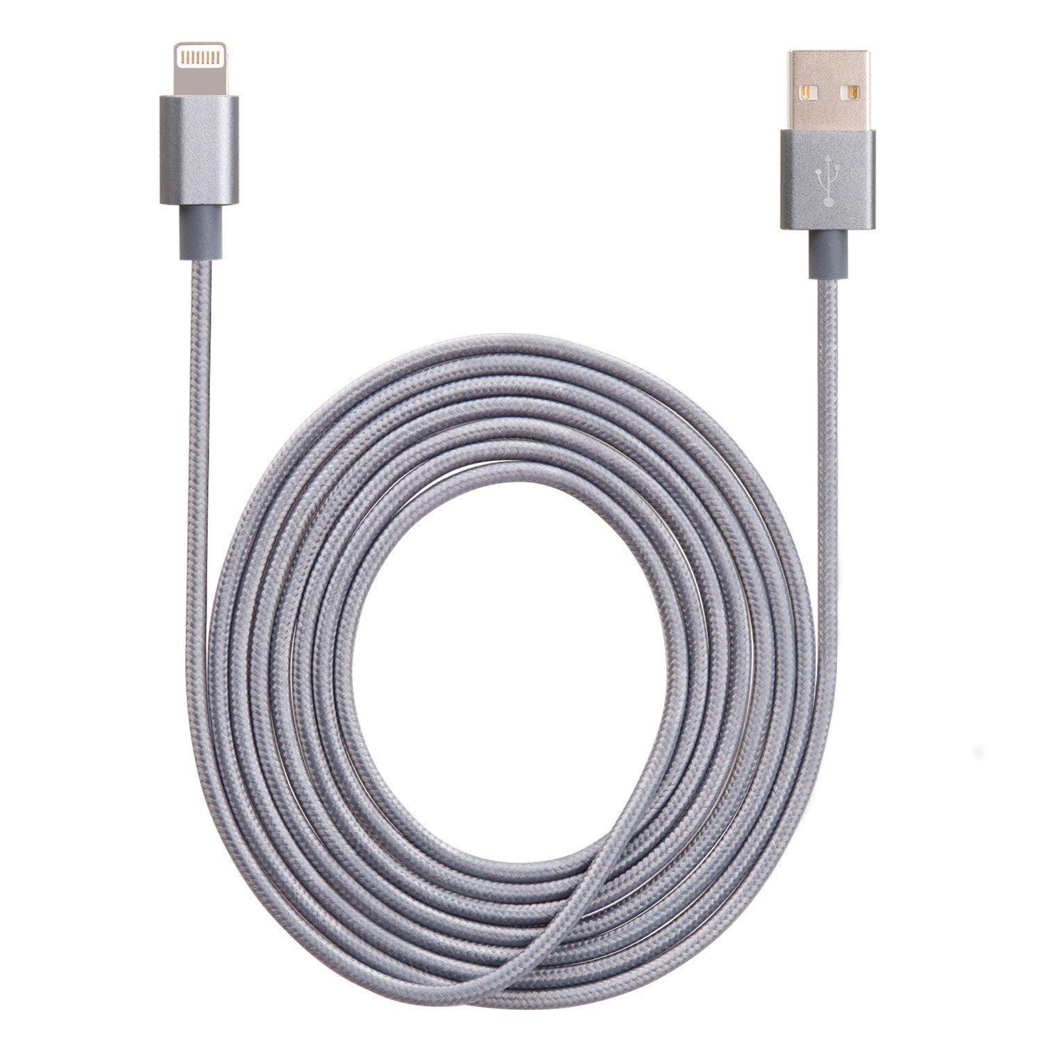 3M 10Ft Durable Nylon Braided Lightning 8Pin to USB Data Sync Charging Cable Charger Cord With Aluminum Heads for iPhone 6/6s/6 Plus/5/5c/5s?∨ iPad 4 Mini Air iPod Nano 7 iPod Touch 5 (Grey)