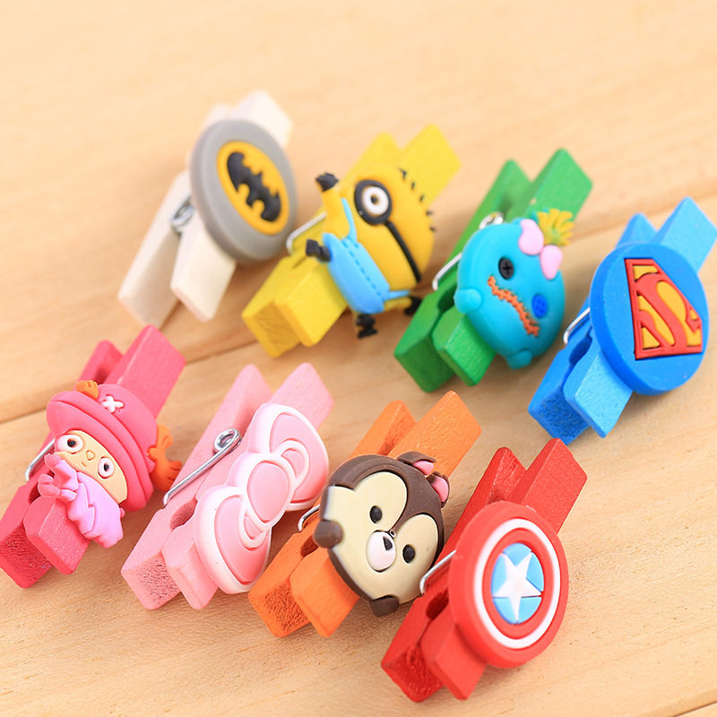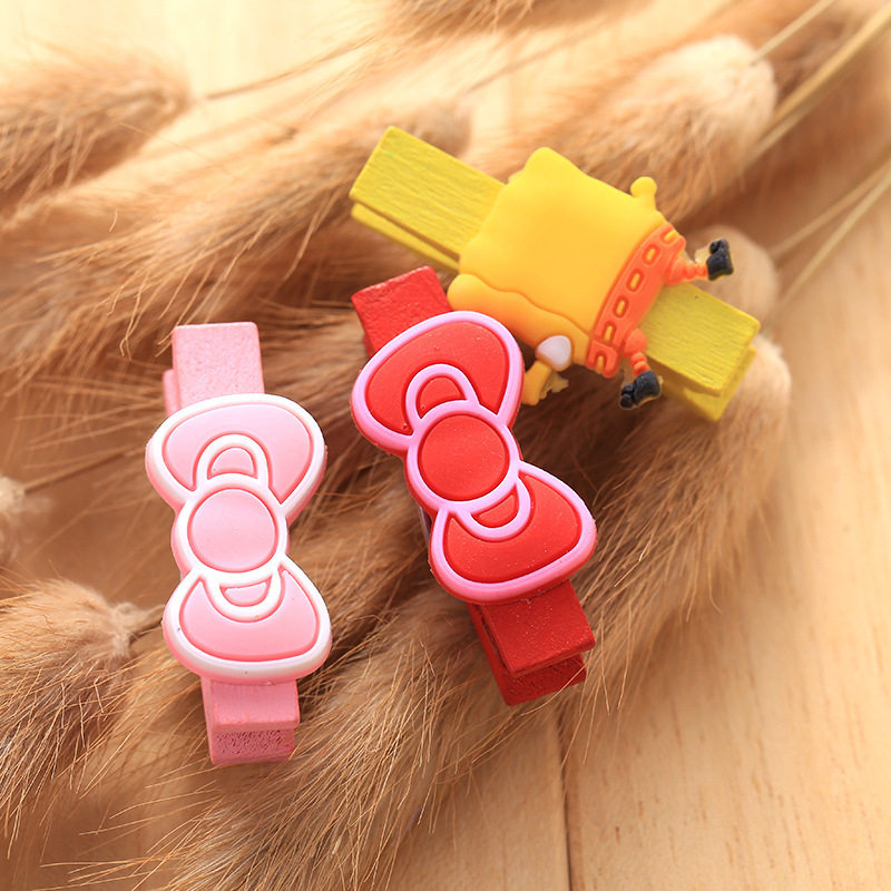 韩版卡通木夹子彩色迷你木夹子KT猫可爱木制小夹子便签夹