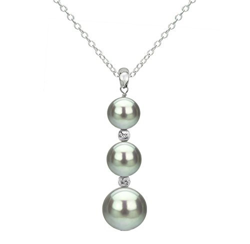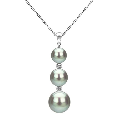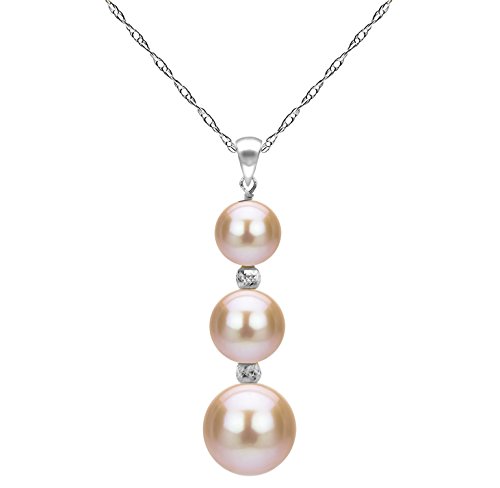 The pendant contains three freshwater cultured pearls in semi round shape, gradually increase in size 5-5.5mm to 7-7.5mm to 9-9.5mm
