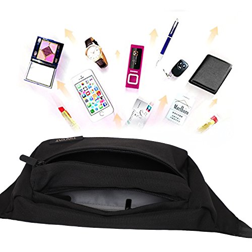 -. Feature : The Adjustable Strap: Fully adjustable polyweb waist belt, which extend up to 100cm. Fit for almost all people,and it can be used as a sling bag, single shoulder bag, bum bag, fanny pack / Multifunctional Structure: The travel bum bag has four pockets, one main zippered compartment, with a shorter front zippered compartment and extra gusseted front velcro fastening pocket as well as an extra hidden rear zippered pocket / Enough Capacity: This can be worn across the body as well as around the wait, it's small and discreet, it sufficient to fit phone, keys, card or cash, dog poo bags and the like. For walking or for travel it would hold tickets, phone, passports, and cash for travel / Apply to: Great for Running, Cycling, Fishing, Hiking, Walking, Travle, all kinds of outdoor sports and daily use, keep your hand free and enjoy a nice life / Guarantee: If you're not 100% satisfy with your purchase of TINYAT waist pack within 30 days, let us know and we'll refund you full with no excuse!