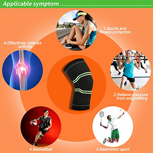 BENEFITS - Our knee sleeves are made of heavy duty high elastic composite material, can provide great compression to support the blood flow & reduces swelling, reduces pain caused by inflammation & overuse, promote muscle recovery.
