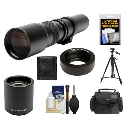 Rokinon 500mm f / 8망원 렌즈& 2x Teleconverter ( = 1000mm ) with케이스+삼각+키트for Olympus om-d em-5,펜 펜E