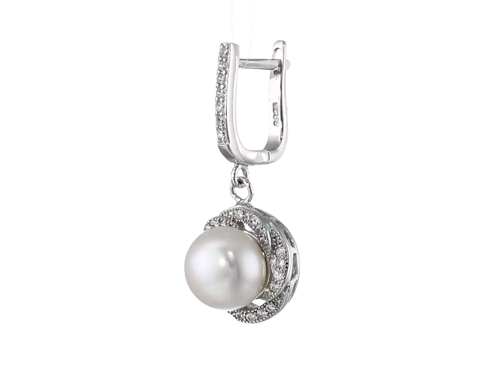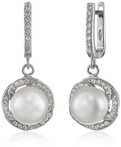 Bella Pearl Sterling Silver, Cubic Zirconia, and Pearl Dangle Earrings