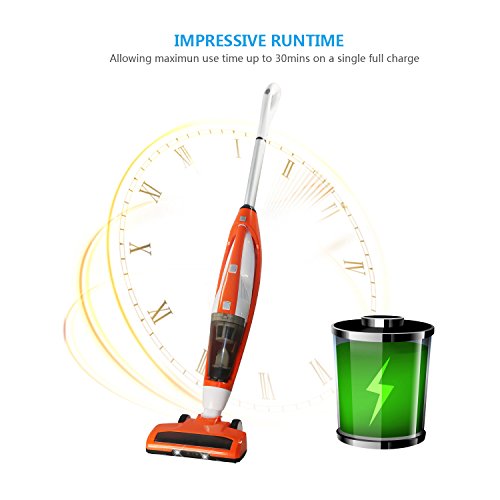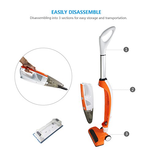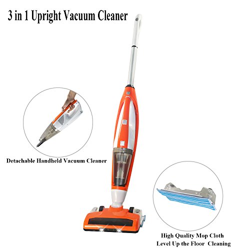 3+1 Cordless Vacuum Cleaner: High suction handheld vacuum(upon the floor type), upright stick sweeper vac and dry/wet cleaning mop cloth with water tank. Good a ideal for light-duty clean up jobs on low carpet and hardwood floors.