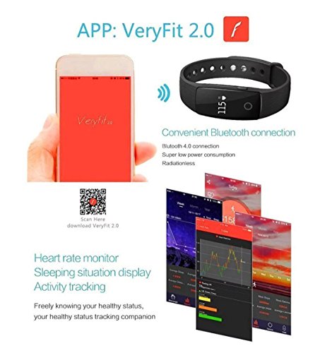 -. Feature : Function:Bluetooth calling: Phone call reminder;Health Tracker: Heart Rate Monitor, Pedometer, Calories Counter, Distance, Sleep Monitor; Alarm Alert, Time Clock,Track steps, calories burned and active minutes. / Fitness Tracker Continues HR Monitor, strap-free heart rate tracker. A simple way to start with heart. / Allows for identifying the extent to which the exercise goal has been accomplished. / Waterproof: TPU material waterproof, not afraid of washing hands/ doing housework/walking under rain / Compatibility with Android 4.4 or later, IOS 7.1 or later, download APP "Veryfit 2.0" from Apple Store or Google Play. (smart phone and tablet only, not for PC)