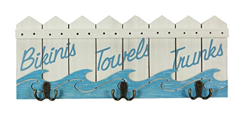 - 3 double hooks are labeled: "Bikinis, Towels and Trunks" so your family and guests know what goes where.