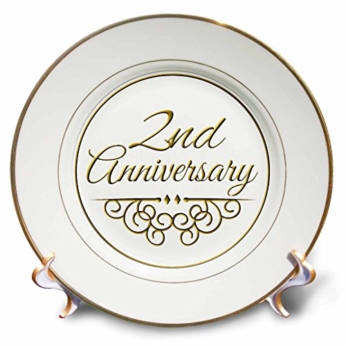 3dRose cp_154444_1 2Nd Anniversary Gift-Gold Text for Celebrating Wedding Anniversaries 2 Second Two Years Together-Porcelain Plate, 8"