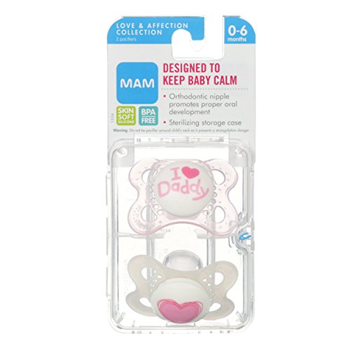 MAM Love & Affection Orthodontic Pacifier, I Love Daddy, Girl, 0-6 Months, 2-Count