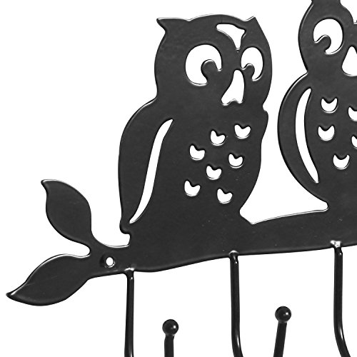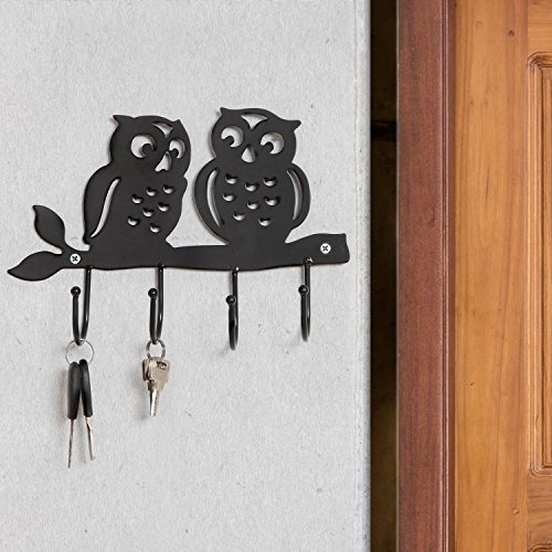 Decorative Owl Design Black Metal 4 Key Hook Rack / Wall Mounted Hanging Storage Organizer