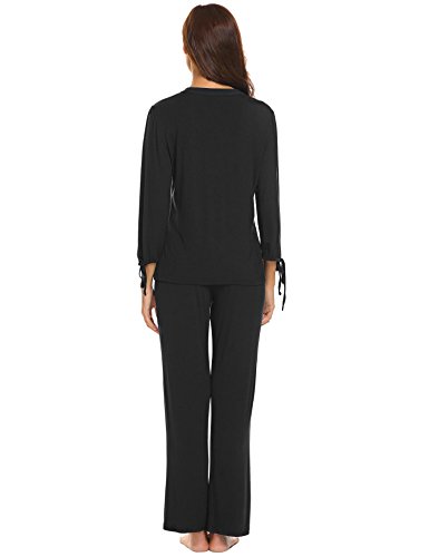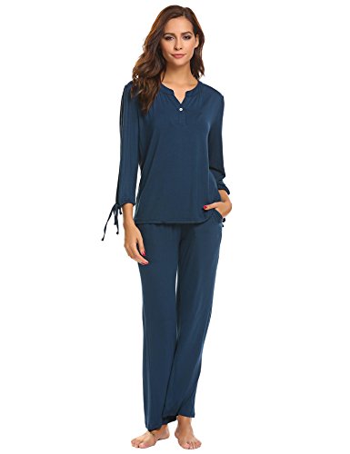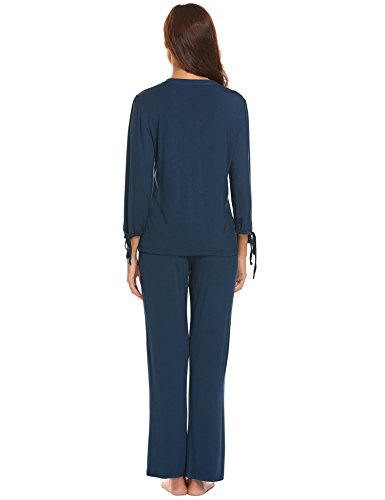 -. Feature : MATERIAL:95% Rayon,5% Spandex,this pajamas sets is extremely soft,warm and comfortable and perfect for all day long / DESIGN:Two-piece sleep set,v neck blouse,arm cuffs with bowknot,pullover closure,one front button,solid long nightgown,loose fit,soft feeling,gives you a better sleeping / FEATURES:They are light and cozy enough to be worn all year round,eye mask provides you a lot of fun,great for pajama parties / OCCASIONS:Perfect for houswear,sleepwear,lounging around the house,give this pajamas set as a thoughtful gift for your family for Christmas / NOTES:Garment Care Washing max 40°C,Iron with press cloth.Our Model Information:Height 176cm,Bust 88cm,Waist 59cm,Hip 90cm