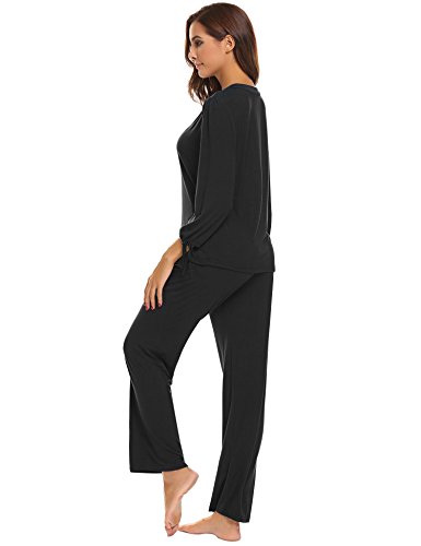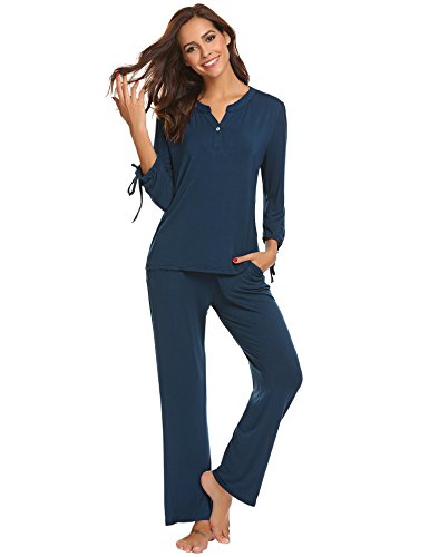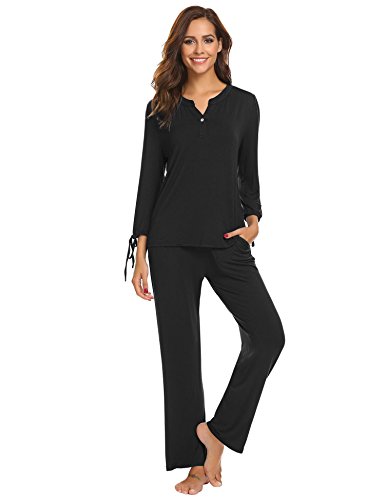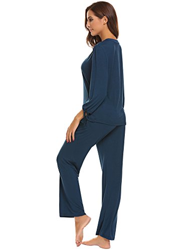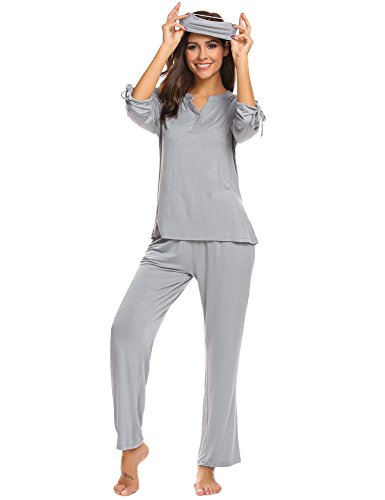 -. Title : Goodfans Women V-Neck Long Sleeve 2Pcs Elastic Waist Sleepwear Sets with Eye Mask S-XXL