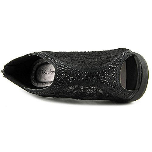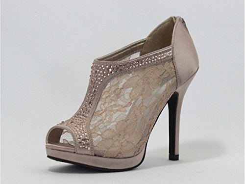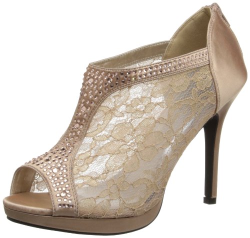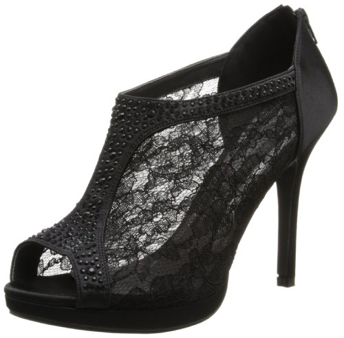 Back-zip closure. Peep-toe silhouette. Rhinestone accent. Synthetic lining and footbed. Wrapped heel and platform. Synthetic outsole. Imported.