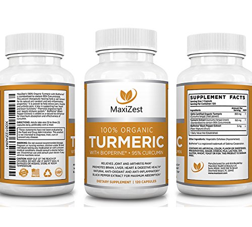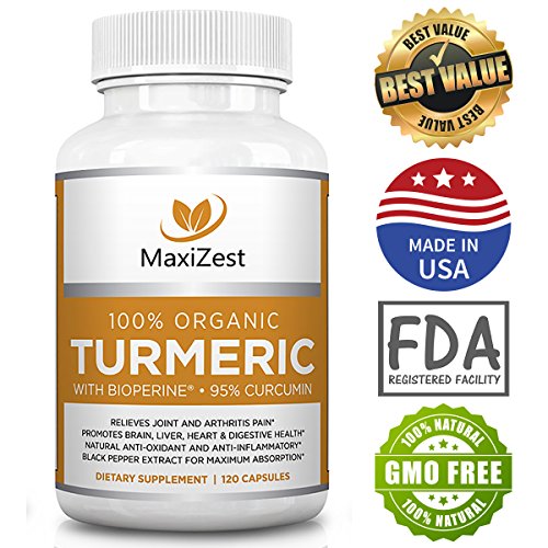 MaxiZest Organic Turmeric Curcumin with BioPerine®. Powerful antioxidant and anti-inflammatory joint supplement for effective pain relief and ongoing joint...
