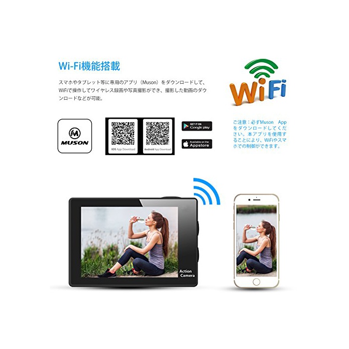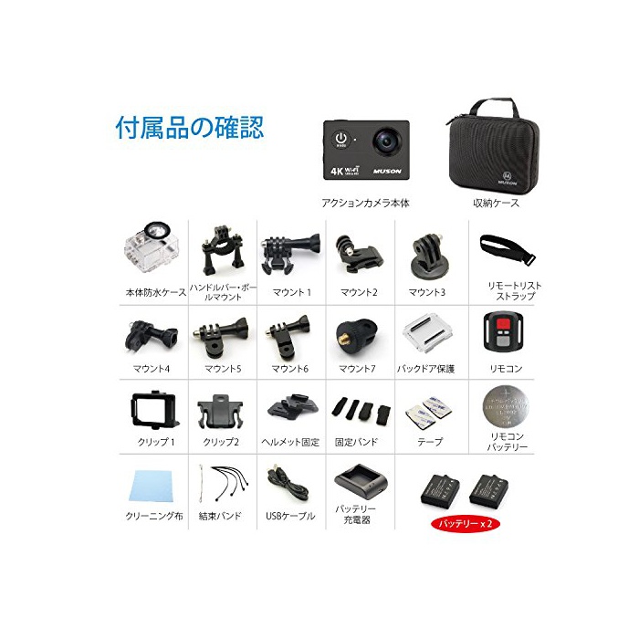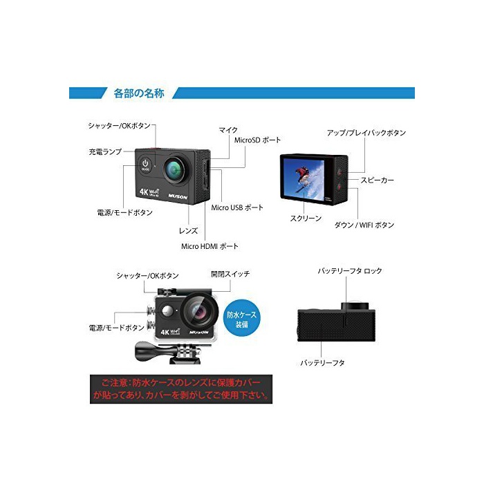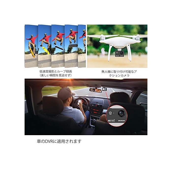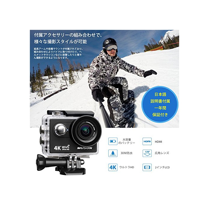 원본상품명: MUSON アクションカメラ 4K 防水[メカ直販/1年保付]2インチ液晶面 WiFi搭載 170度角レンズ ハルメット式 スポツカメラ バイクや自車、カトや車に取り付け可能 ウェアラ