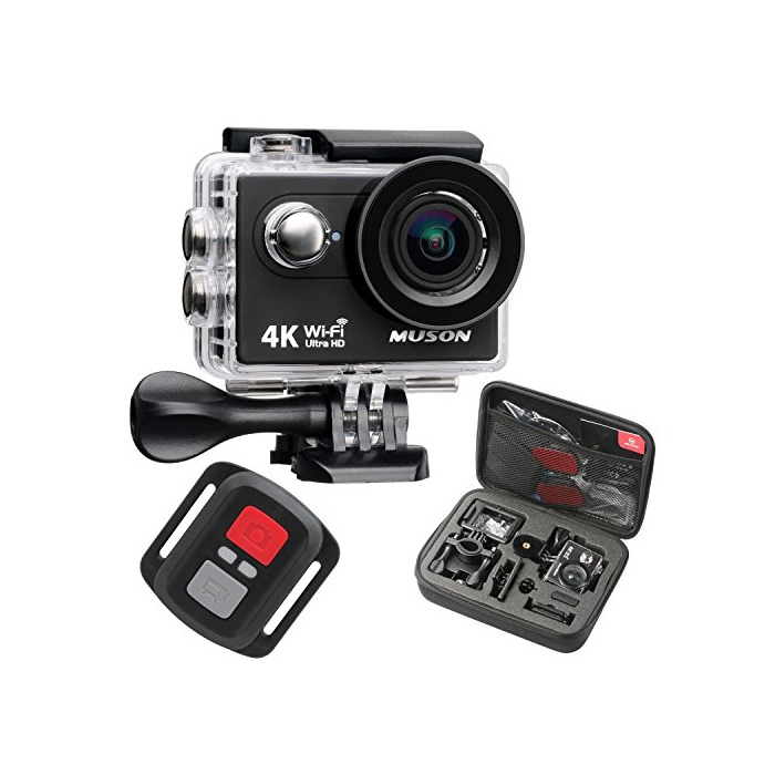 MUSON 액션 카메라 4K 방수[메이커 직판/1년 보증이 붙어 있음]2인치 액정 화면 WiFi탑재 170도 광각 렌즈 할리 멧트식 스포츠 카메라 오토바이나 자전거,카트나 차에 설