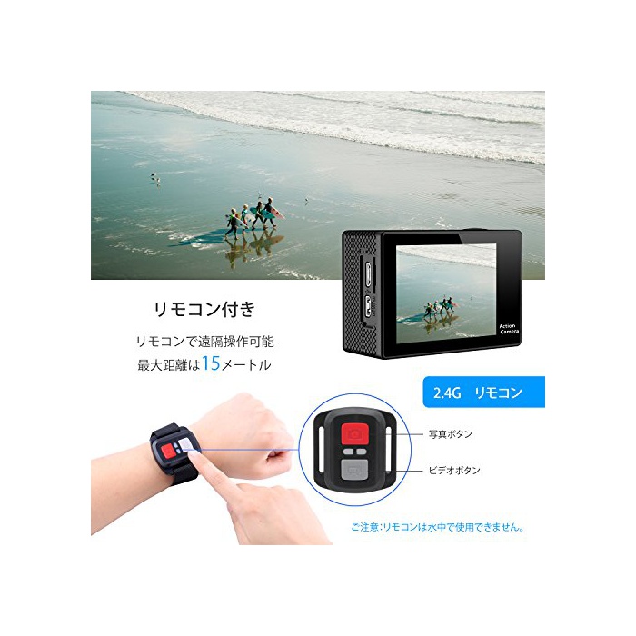 【WIFI기능 탑재&리모콘 부착】iOS/Android/google play에 Ezi cam이라고 하는 어플리케이션을 검출해 wi-fi촬영도 어플리케이션에 제어하는 나와 옵니다.WIFI에《스마호》,Iphone,타블렛에 전용의 어플리케이션을 다운로드하면 WIFI콘트롤 wireless 녹화나 사진 촬영 를 할 수 있습니다.리모콘으로15미터 원격 조작 가능합니다.리모콘 조작:촬영 모드에,비디오 버튼을 누르고, 카메라 램프는 점멸하고, 동영상 촬영이 개시합니다.다시 비디오 버튼을 눌러 동영상 촬영을 종료합니다.사진을 찍는 모드에,빨간 버튼을 누르고, 사진을 촬영고 있습니다.