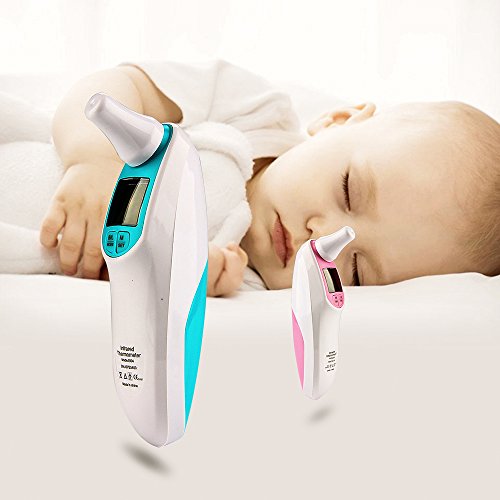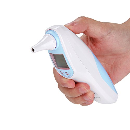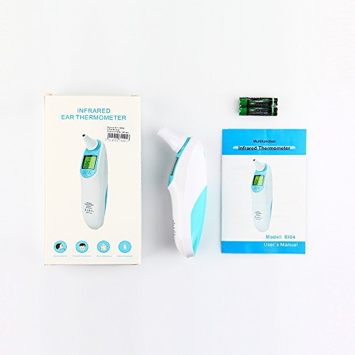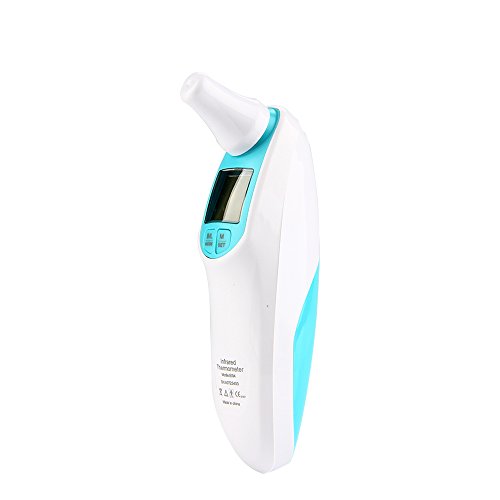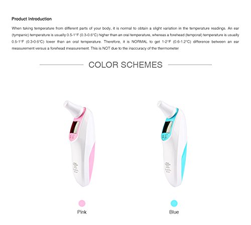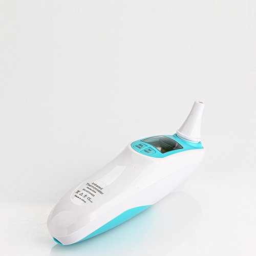 Introduction: Note: When taking temperature from different parts of your body, it is normal to obtain a slight variation in the temperature readings. An ear (tympanic) temperature is usually 0.5-1°F (0.3-0.6°C) higher than an oral temperature, whereas a forehead (temporal) temperature is usually 0.5-1°F (0.3-0.6°C) lower than an oral temperature. Therefore, it is NORMAL to get 1-2°F (0.6-1.2°C) difference between an ear measurement versus a forehead measurement. This is NOT due to the inaccuracy of the thermometer. Specification: Weight: 80g Measuring Aaccuracy: ±0.2℃ Measuring range: 34.oC - 44.oC (93.2F-111.2 F) Dimension: 134 x 34 x 70mm Power consumption: 0.6MW(working) Memory: 10 recordings Measuring time: 1 second Min Scale: 0.1C Battery life: Approx 4000 takes Power: 2 x 7# Battery(3A) 0
