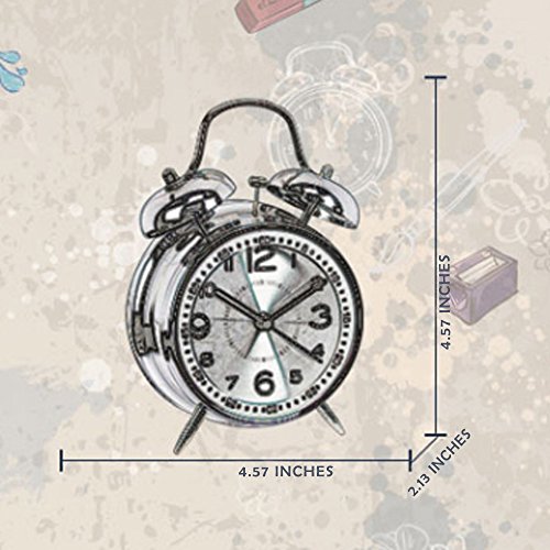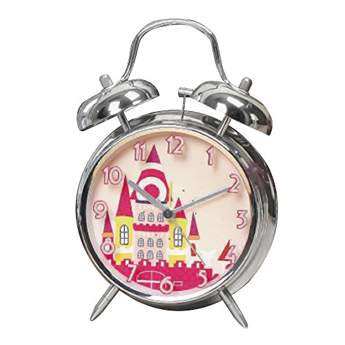 Silent 4” Large Kids Alarm Clock for Girls - Twin Bell - Strong Metal Frame –Analog non Ticking Clocks- Comfortably Loud- Battery Operated - Back Light - ChildrenPink Castle