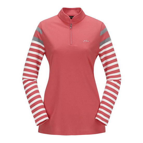 - 소매 스트라이프 패턴으로 포인트를 준 여성 티셔츠.