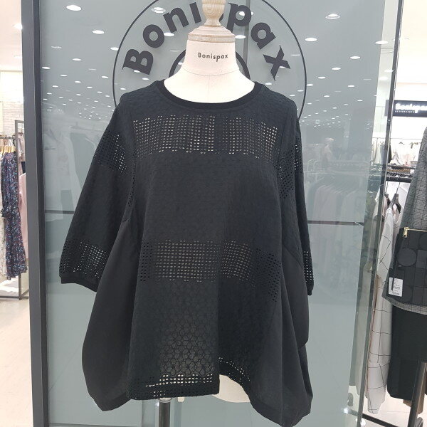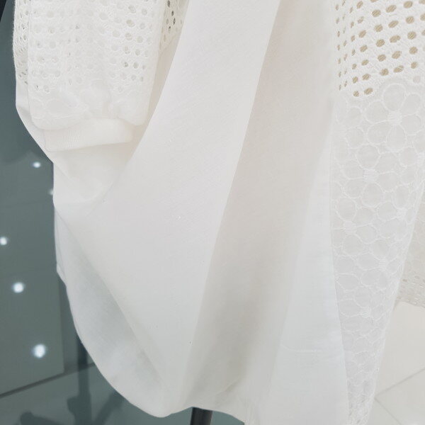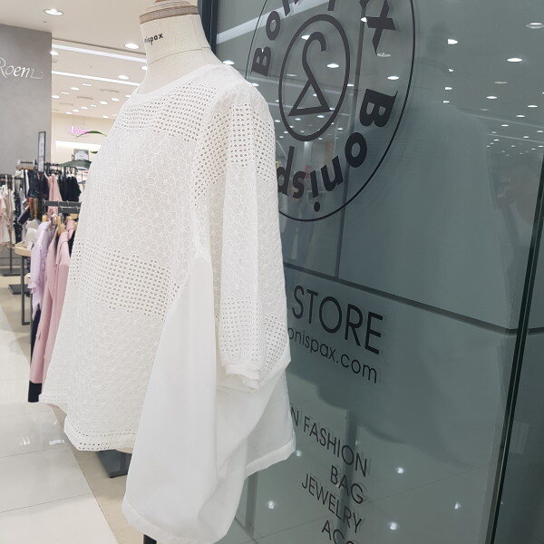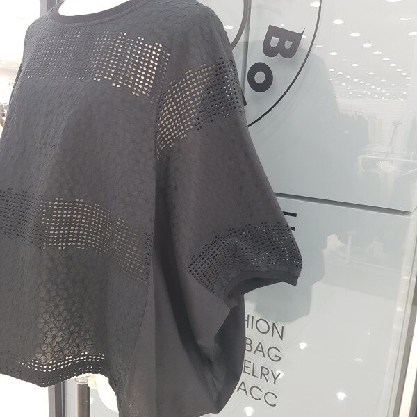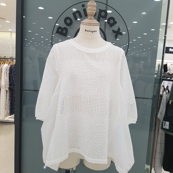 가오리핏에 매쉬패색 브라우스 입니다.나시와같이 코디하시면 세련되고 시원하게 착용할수 있습니다