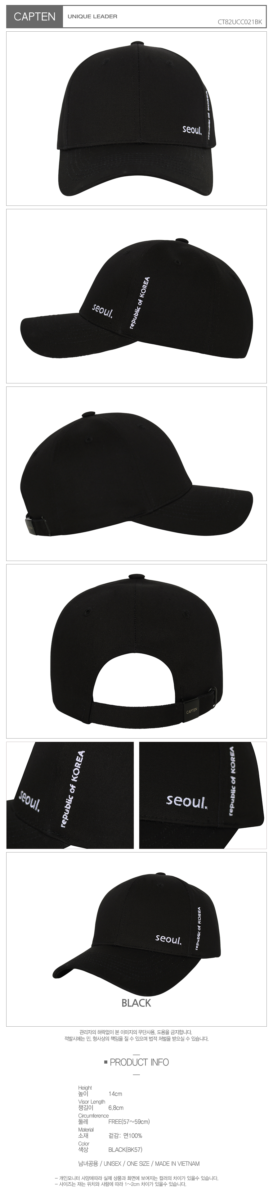 사이즈높이: 14cm, 챙길이: 6.8cm, 둘레: Free(57~59cm)