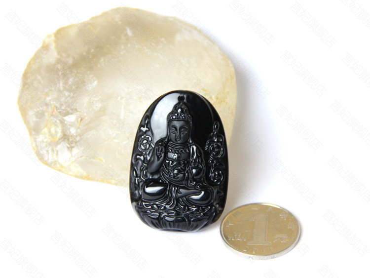 天然黑曜石吊坠 开光生肖属猪狗本命佛阿弥陀佛守护神
