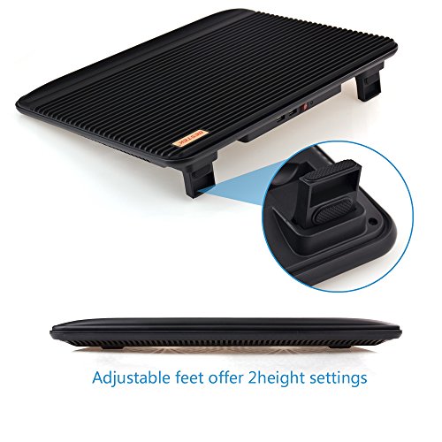 BESTEK Dual Fans Laptop Cooling Pad Advantage: Laptop cooling pad with stripe-design of large area, ideal for all gaming notebooks and laptops within 17 inches, constinuously cool air making the bottom of your laptop much cooler, protects your computer from overheating, prolongs the life of your notebook .