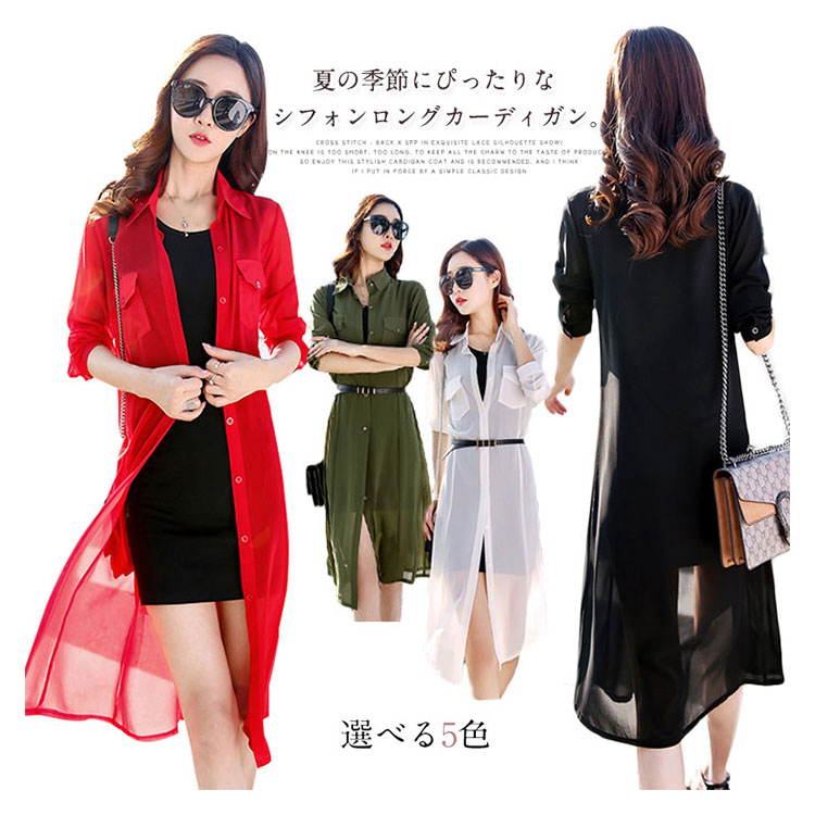 | 夏の季節にぴったりなシフォンロングカーディガン。ロング丈でさりげないこなれ感を演出してくれる。透けるシフォン素材なので、インナー次第でコーデ幅が広がるし、涼し気でこれからの季節にもぴったりです。コンパクトに畳めるので持ち歩きにも最適◎ 着回ししやすい定番カラーからトレンドカラーまで揃えました。さらっと羽織るだけで大人のこなれ感を添えるカーディガンを、ぜひお試しください。ストンとした落ち感が上品でキレイなドレープデザインはすっきりとしたシルエットにもこだわった上質な一枚♪ | |