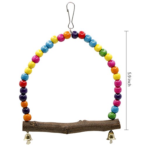 Bird Swings, Rusee Wooden Budgie Toys Pet Bird Cage Hammock Swing Hanging Toy for Parakeets Cockatiels, Conures, Macaws, Parrots, Love Birds, Finches (2 Pack)
