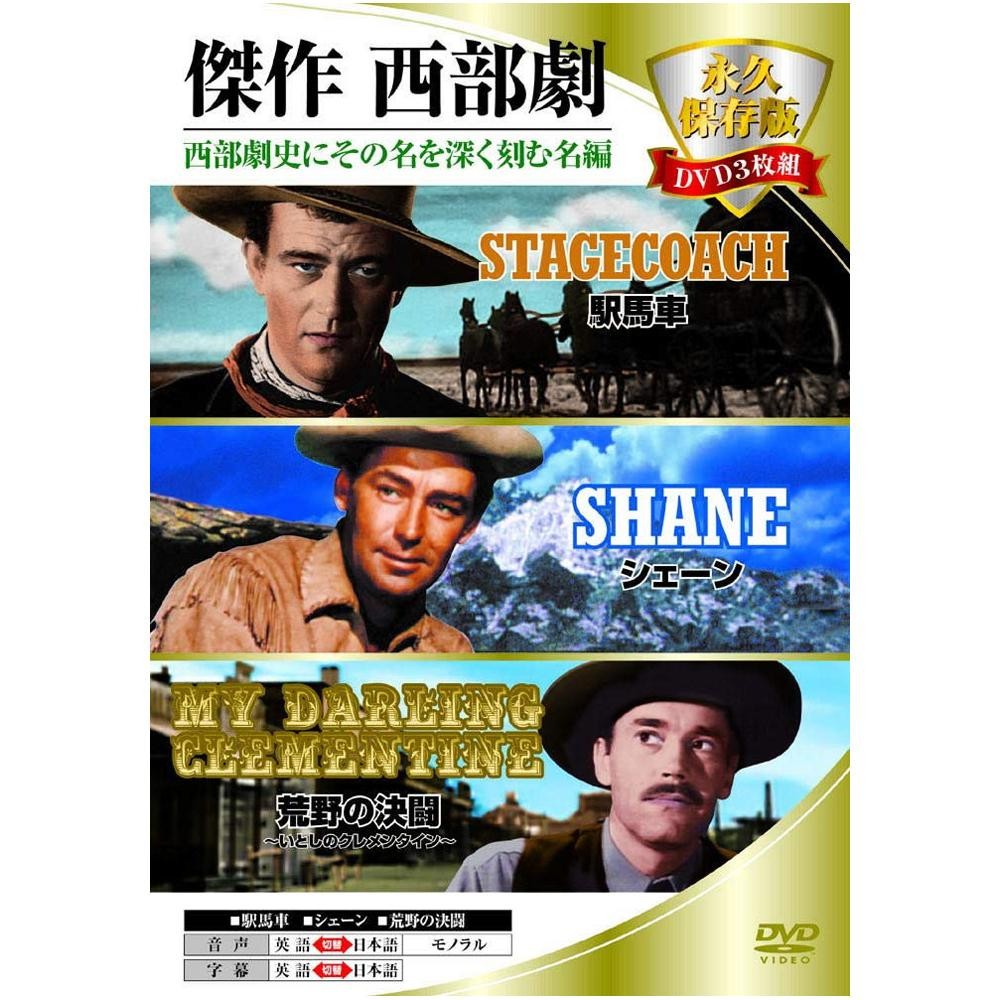 西部劇の傑作「駅馬車」「シェーン」「荒野の決闘~いとしのクレメンタイン~」が入ったDVD豪華3枚組!映画好きにも、初心者にもおススメの永久保存版。