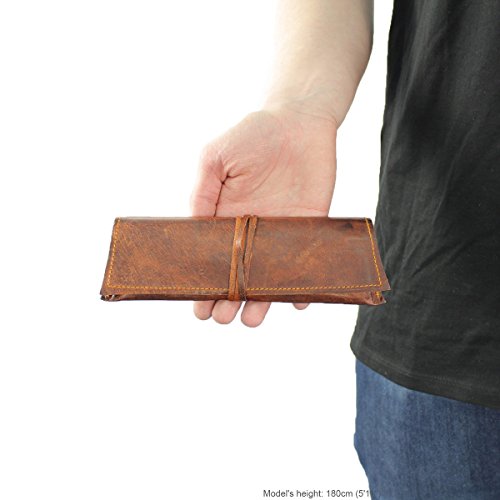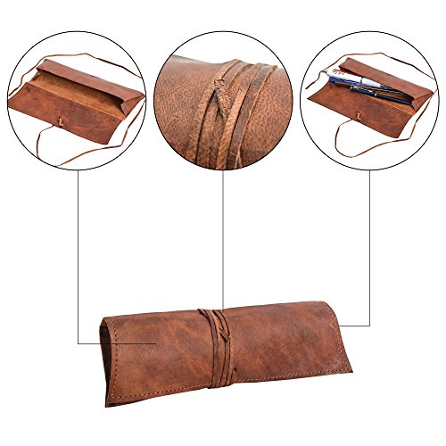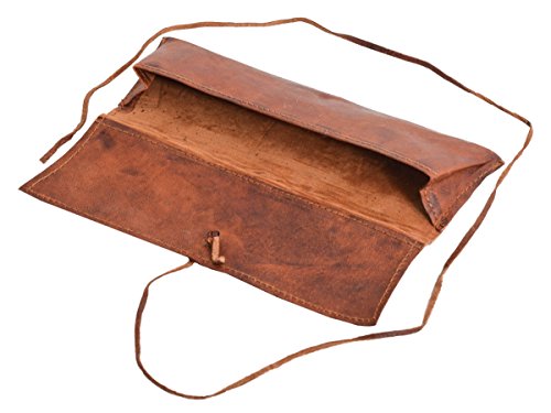 Gusti Leather Genuine Leather Stationery Pencil Pen Case University Vintage P6 - Brown