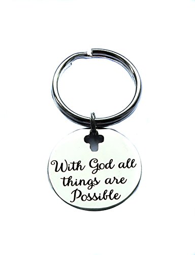 Product Description Keychain made with a 15/16" x 15/16" or 24mm x 24mm stainless steel "With God all things are possible" circle charm. Can be used as a keychain, bag charm, zipper pull, etc. Makes a great inspirational gift! 0