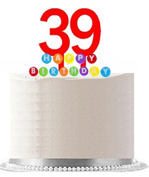 Item#039WCD - Happy 39th Birthday Party Red Cake Topper & Rainbow Candle Stand Elegant Cake Decoration Topper Kit