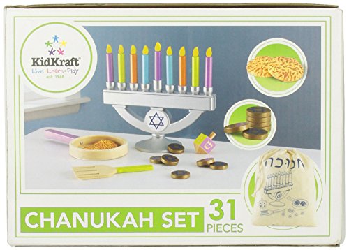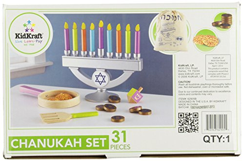 - Feature : Helps teach kids about important religious traditions / Menorah / Dreidel / Six coins / Two potato latkes, spatula, pan and storage bag