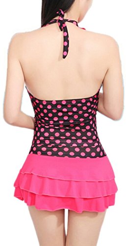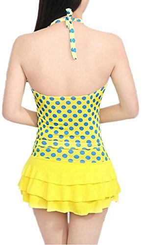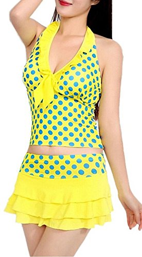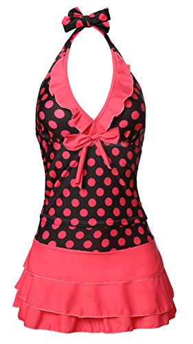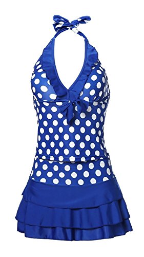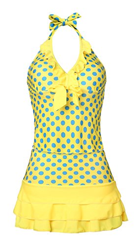 MiYang Women's Two Pieces Polka Dot Halter Push Up Slim Tankini Swimsuit
