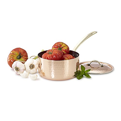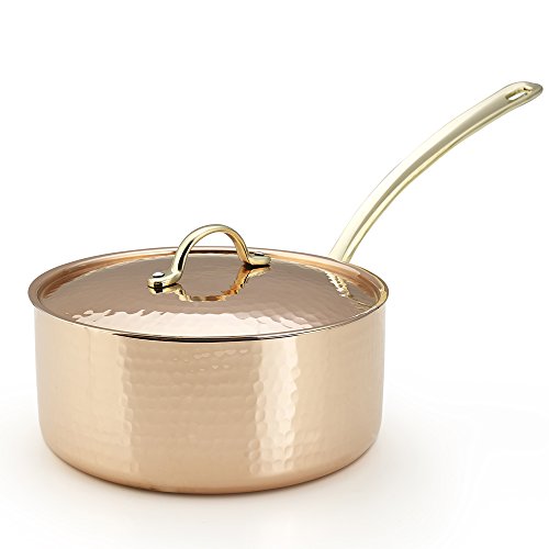 The Kuprum 1.4 Quart Solid Copper Saucepan is hand-hammered using the highest quality copper. Copper has been a favorable cooking material for centuries. Copper cookware heat up rapidly and cool down quickly, enabling maximum heat control. As a result, the copper saucepan distributes heat more immediately and evenly than cookware made with other materials. The Kuprum Copper Saucepan has tin lining as opposed to steel lining, which enhances heat control properties of the copper saucepan. This is why chefs prefer to cook with copper pots and pans. The Kuprum Copper Saucepan is also a beautiful piece to present on the table straight off the oven. It has unique hammer patterns that are crafted with great passion and skill. These patterns play with light and enhance the allure of the elegant, rosy metal. A copper saucepan requires much less heat than cookware made with other materials. Your copper saucepan will help you save on energy costs. Hand washing copper cookware prolongs its lifespan. Do not use copper pots and pans in the microwave. Dry your copper saucepan immediately after washing. Your copper saucepan will naturally form a dark layer (patina) with age, which doesn't affect its performance. Occasionally use a non-abrasive cleaner to keep your copper saucepan looking new. Rub the copper saucepan briskly with a soft cotton cloth using a copper polish.Feature