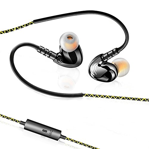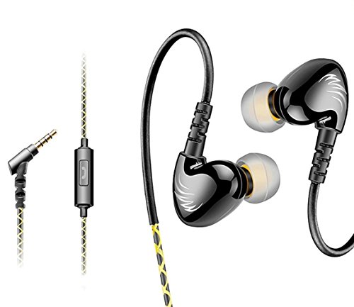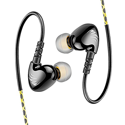 Wired Earphones, UNEGO Ergonomic Sweatproof Noise Cancelling Over Ear Earbuds Bass Stereo In-Ear Headphones with Mic Earhook 3.5mm Jack HIFI Audio for IPhone Android Smartphones Tablets (Black)