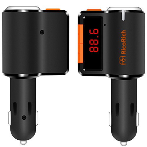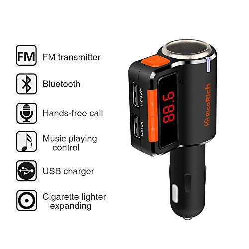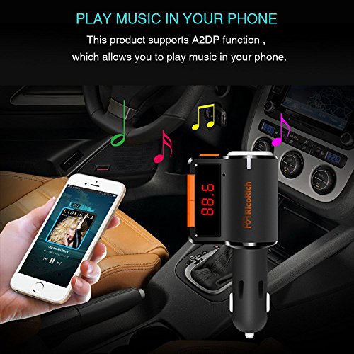 RicoRich Bluetooth FM Transmitter for Car, Car Radio Bluetooth Adapter ,Cell Phone Bluetooth Car Kits with Dual USB Charger,FM Stereo MP3 Player Bluetooth Receiver with Handsfree Calling