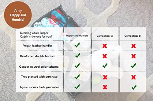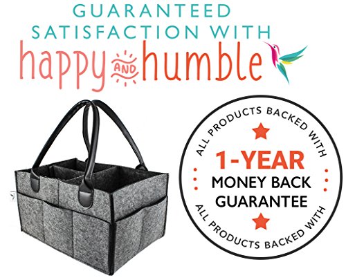 When Baby comes along, life changes instantly ? at Happy and Humble, we are dedicated to creating practical products of the highest quality to ensure a happier and more efficient home, giving you more time to enjoy your family and focus on what's important. Happy and Humble Diaper Caddy and Storage Organizer?offers: Soft felt and even softer?faux leather handles - the felt is soft to the touch and the faux leather even softer, which feels great against your skin, especially when holding the caddy at the same time as holding your baby. Lightweight and portability?- instead of bringing individual baby products to and from the nursery, pack the essentials in our sturdy but lightweight storage tote. You'll love how easy it is to carry around, so much so, that lots of moms use it for travel! Removable dividers for more customization?- unlike other diaper bags and totes out there, the Happy and Humble diaper caddy comes with removable dividers to make it easier to fit your caddy to your specific needs. Just attach or detach from the velcro to make it yours. Versatility in function and design?- our gender neutral colors ? gray and black ? make this an attractive choice for both moms and dads, and once Baby outgrows diapers, the felt storage bin can be used for years to come. We've had customers use it for organizing art supplies, books, picnics, pet supplies, etc. 100% satisfaction guarantee?- our diaper caddy and storage organizer is backed by our manufacturer 30-day money-back guarantee with 1-year free replacement warranty. On top of that, we will plant a tree with every purchase through our partnership with One Tree Planted.? So what are you waiting for? Make our world more beautiful while making your life easier by adding to your cart today! 0 |