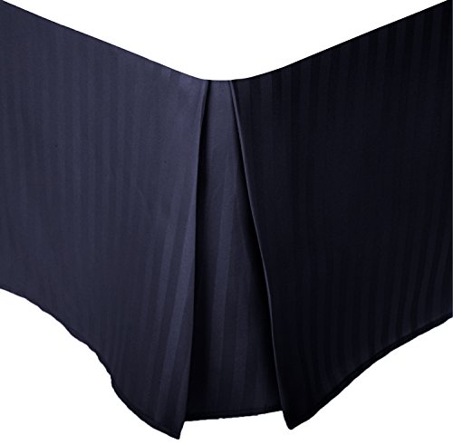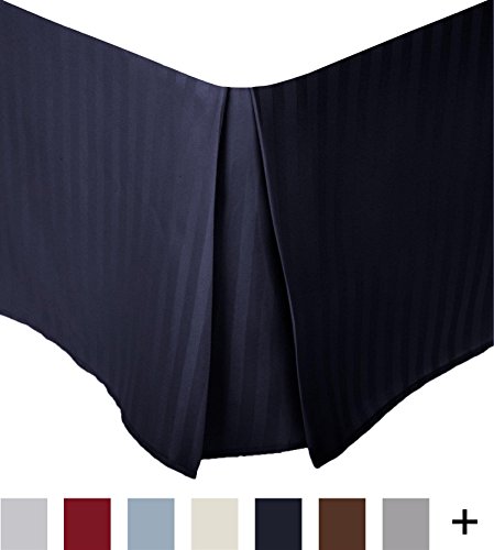 Superior 1500 Series 100% Microfiber Pleated Queen Bed Skirt Stripe, Navy Blue - 15 Inch Drop and 100% Microfiber