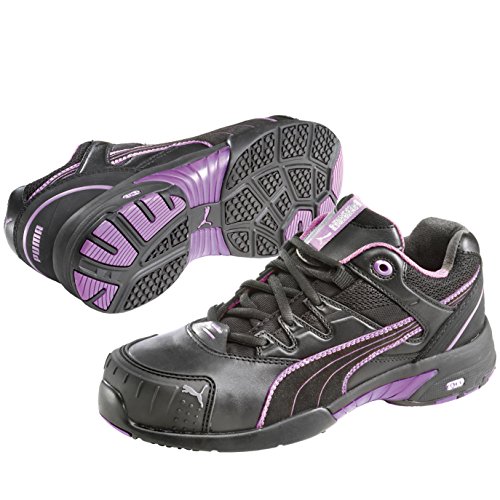 Studio : PUMA Publisher : PUMA Binding : Apparel Product Description Women's Puma Safety Stepper SD Low Safety Toe Shoes. Who says safety shoes have to be bulky and ugly? The people at Puma Safety are here to change the game when it comes to job-ready shoes. Just take a look at these Stepper Shoes and you'll never suspect they're hiding all the safety features your jobsite demands. Wear them 9-5 then out for drinks or errands afterward and no one will know they're your "work shoes." You might even mistake them for your favorite pair of gym shoes! They've got great athletic style, plus a durable safety toe and a heat-resistant outsole that will stand up to brief contact with surfaces up to 572 degrees F! That's pretty hot! Plus, they're also static dissipative "SD" and anti-slip... oh, and they're super comfortable, too. Safety first: Leather and synthetic uppers; TPU toe protection; Heat and slip-resistant sole; Static dissipative "SD"; BreathActive lining; evercushion MISS footbed for lightweight, cushioning, while also wicking moisture away; MISS SAFETY MOTION with Torsion Control System rubber sole; EVA midsole; Cushioning IQ.Cell in the heel area absorbs shock and returns it as bounce in your step for increased energy on your feet. State Size. Order yours today! Women's Puma Safety Stepper SD Low Safety Toe Shoes 0