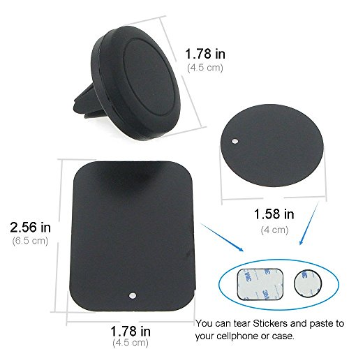 -. Feature : Adjustable Mount to fit most cell phones used on car air vent or desk. / Easy to to install and release -- No suction cup, no sticky pad necessary. No tools required / With strong magnetic backstand preventing your phone from dropping down / 360°£»adjustable angle gives you a best view angle and easy operation of your phone / TECHNICAL DETAILS: fit 1.36(inch) ˜ 3.90(inch) width Cellphones/Smartphones; Weight: 60g; Color: Black