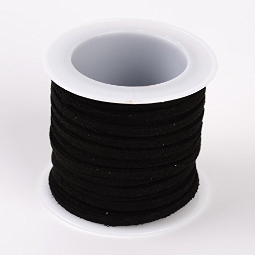 Pandahall Faux Leather Lace Beading Thread 3mm Faux Suede Cord String Velet 5 Yards with Roll Spool, Black