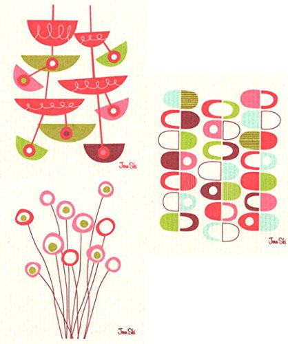 -. Title : Swedish Dishcloths, Jenn Ski's Mid-Century Modern Designs - Set of 3 Pink-Red