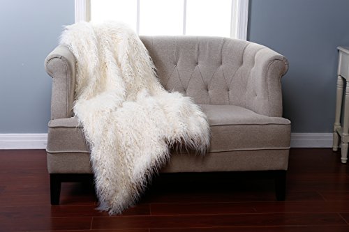 Best Home Fashion Faux Fur Throw - Full Blanket - Ivory Mongolian Lamb - 58"W x 84"L - (1 Throw)