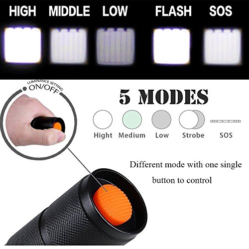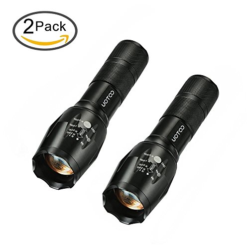 UOTOO 2 Pack Ultra Bright Portable Outdoor LED Tactical Flashlight, Water Resistant Torch Light with 5 Light Modes, Adjustable Focus