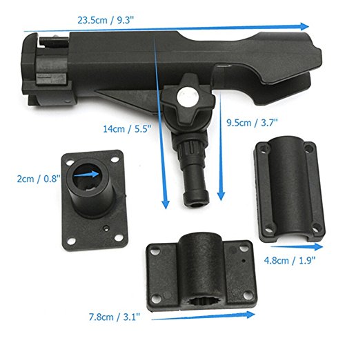 -. Binding : Misc. -. Brand : Yarachel -. Feature : Material: 100% brand new propylene polymer material + stainless steel bolt. Durable, environmental protection. / Adjustable: 360 degree rotation can meet your different use requirements. / Easy to Install: Install on the kayak or on the boat firmly and securely. / Multi-purpose: Can be installed on boats, canoes and kayaks, also can clip on the yacht railing. / Package Included: 1 or 2 x Boat Fishing Rod Holder. Can be detached when you not using it. -. IsMemorabilia : 0 -. Label : Yarachel -. Manufacturer : Yarachel -. ProductGroup : Sports -. ProductTypeName : SPORTING_GOODS -. Publisher : Yarachel -. Studio : Yarachel -. Title : Yarachel Adjustable Black Boat Fishing Rod Rack for Boat Kayak Swivel Swivel Side Mount Kits Tackle