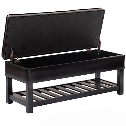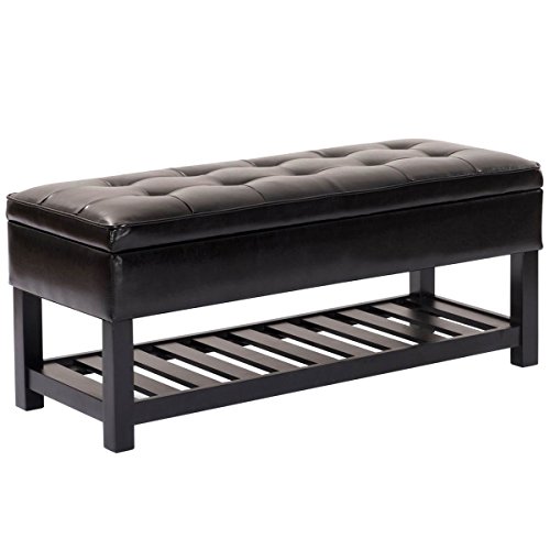 -. Brand : eXXtra Store -. Color : Black -. EAN : 8003431400601 -. Feature : Sturdy pine wooden construction and exquisite stitch for durability and stability / With padded PU leather top and cover provided ultimate comfort / Spacious hidden storage space, great for store away your books, clothes etc / Feature an open slat bottom shelf for additional storage / Assembly required -. Label : eXXtra Store -. Manufacturer : eXXtra Store -. MPN : Does not apply -. PartNumber : Does not apply -. ProductGroup : Furniture -. ProductTypeName : HOME_FURNITURE_AND_DECOR -. Publisher : eXXtra Store -. Studio : eXXtra Store -. Title : Storage Bench Ottoman Shoe Rack Organizer Entryway Furniture PU Leather