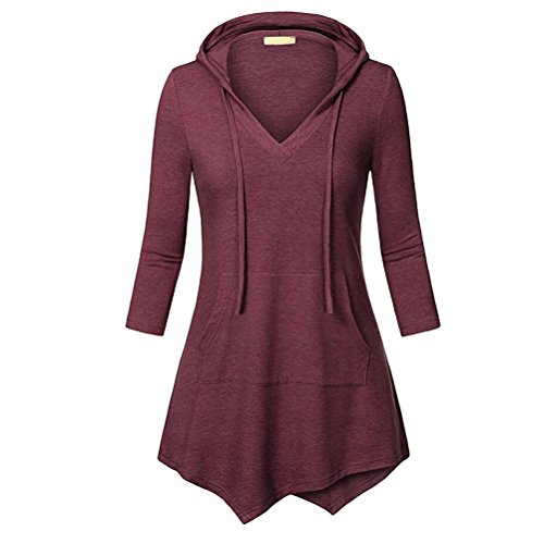 -. Title : Zhhlinyuan ファッション デザイナー Fashion Classic V-neck Drawstring Hooded Shirt Dress Irregular Design Mid Sleeved Womens Tops