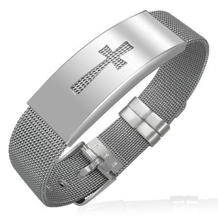 -. Title : Stainless Steel Cross Chastity Mesh Silver-Tone Womens Bracelet
